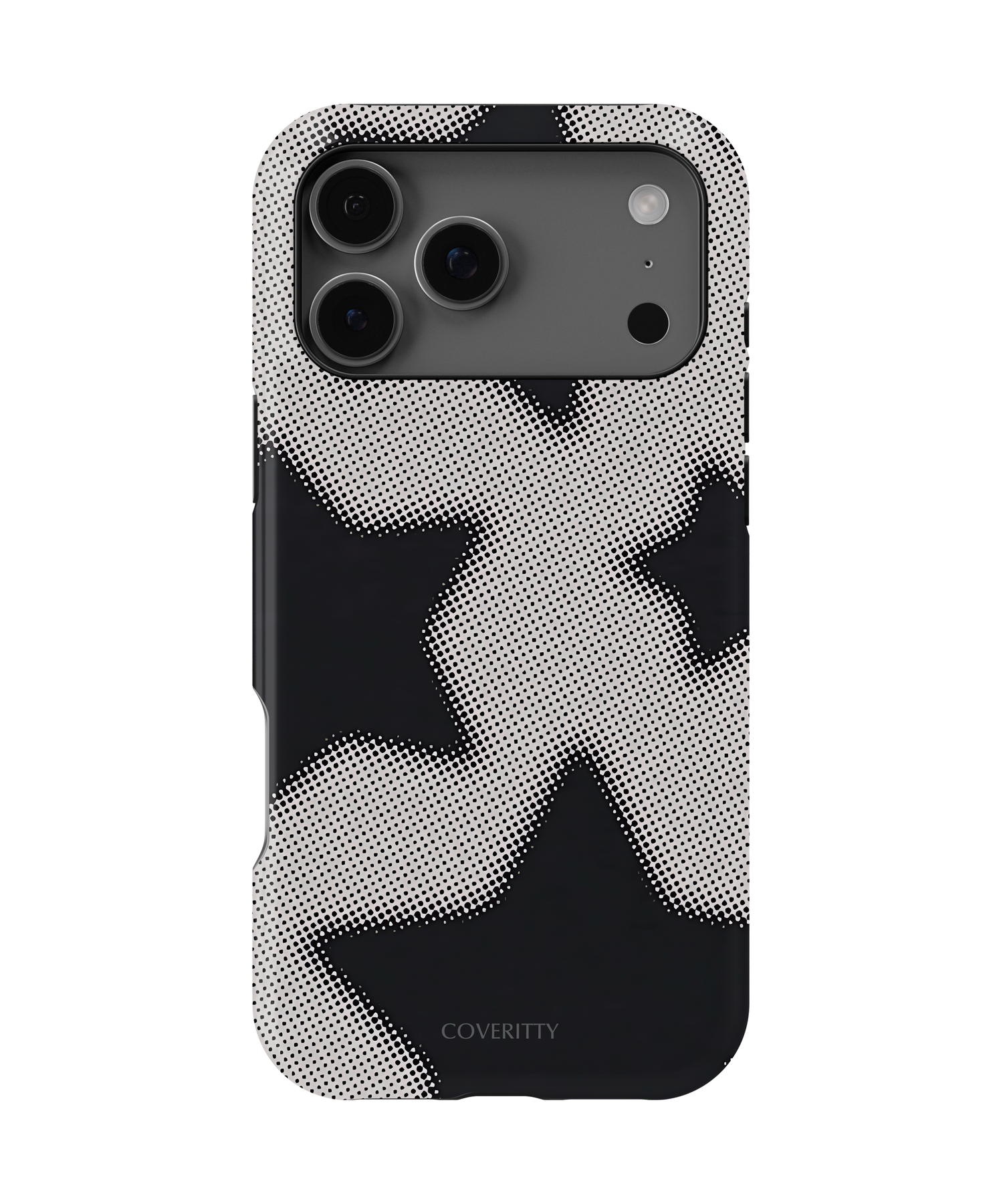 Black and white star design phone case with retro halftone effect